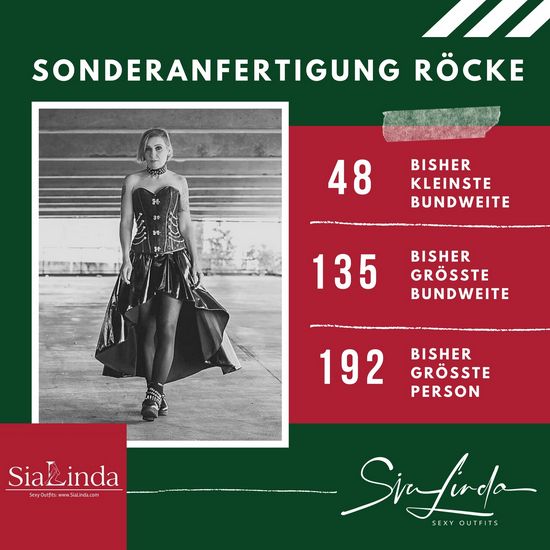 Wir bieten die Röcke im "SiaLinda Schnitt" in folgenden Größen an: